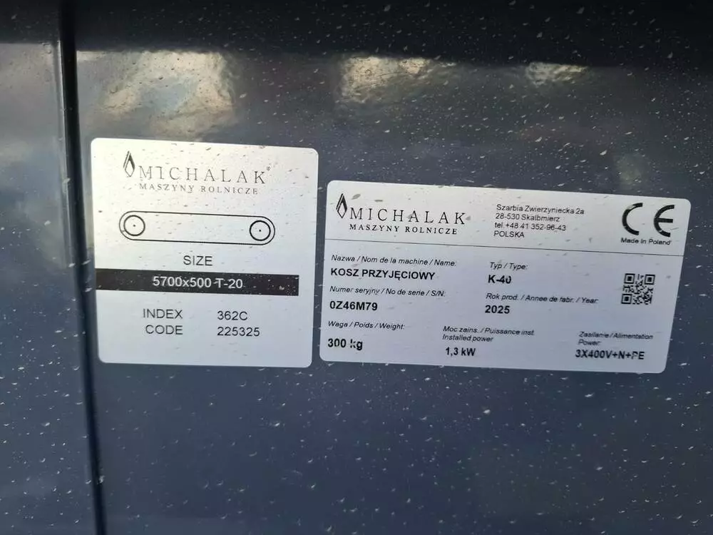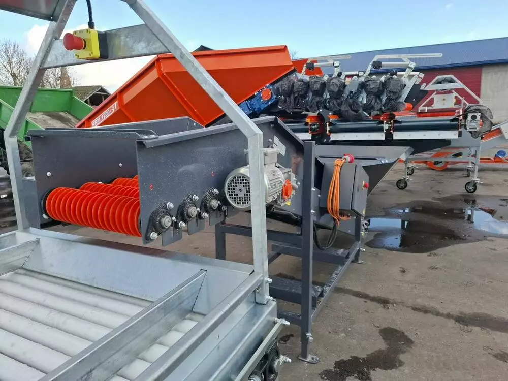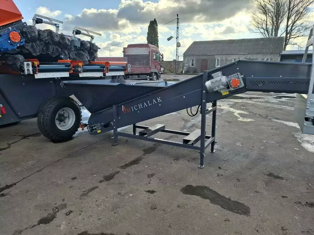 Приемный бункер предназначен для приема овощей и подачи их на следующие стадии обработки, марка "Michalak", модель «К-40» емкость бункера 1м3, лента шириной 40 см, с шипами шириной 2см